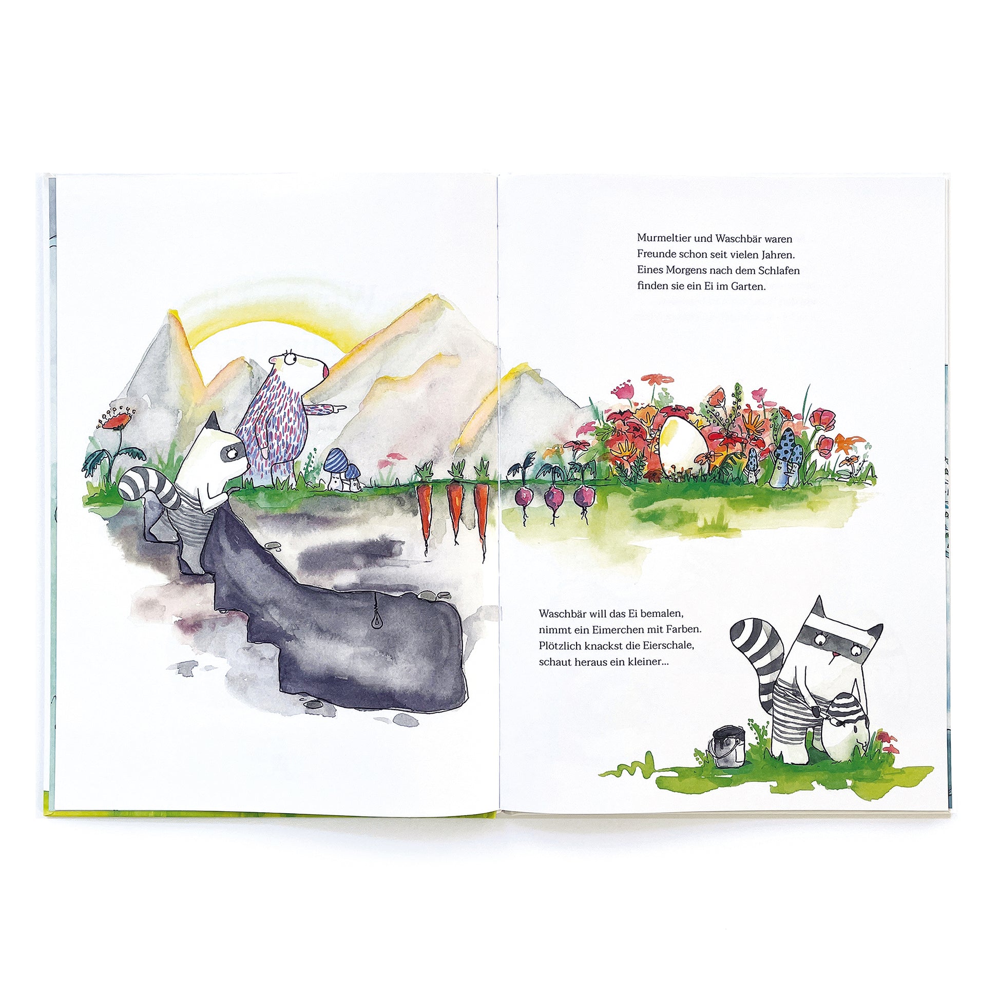 Eines Morgens finden Murmeltier und Waschbär ein Ei im Garten – aus dem plötzlich ein kleines Küken schlüpft. Zu Dritt begeben sie sich auf eine spannende Abenteuerreise und entdecken dabei, was es heißt, Familie zu sein.
